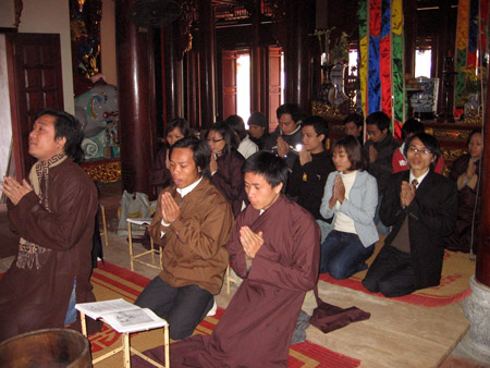 Sau khi chia sẻ, các thành viên đã lên chính điện Phật để tụng một thời kinh, dùng cơm trưa trong không khí ấm cúng, chân tình. Các thành viên cũng đã đóng góp tại chỗ được 4,3 triệu để ấn tống lịch treo tường 2007 của Câu lạc bộ.