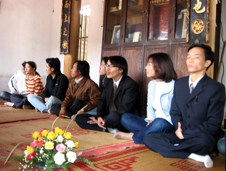 Thiền Phong – Phạm Tuấn (thứ nhất từ phải sang): Phó chủ nhiệm Câu lạc bộ Thanh niên Phật tử Việt Nam tại miền Bắc
