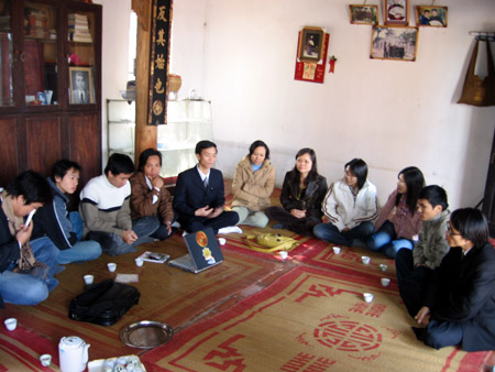 Buổi chiều, Câu lạc bộ rất vui mừng chào đón các thành viên mới gia nhập Câu lạc bộ – đó là các thanh niên Phật tử chấp tác tại chùa Cót, bao gồm một số bạn sinh viên trường Cao đẳng Văn hóa Nghệ thuật – Khoa Kịch hát và khoa Múa.