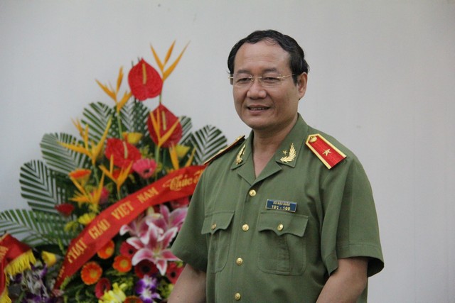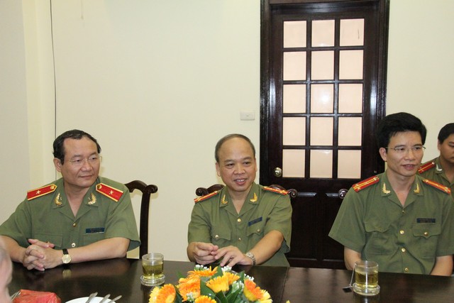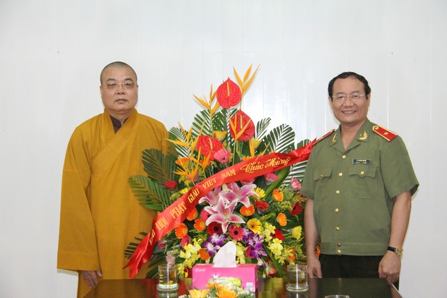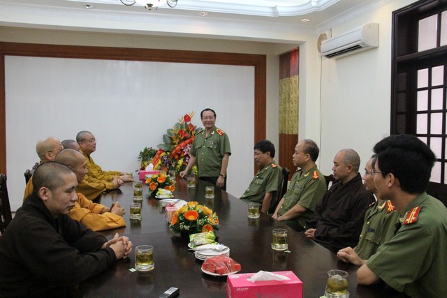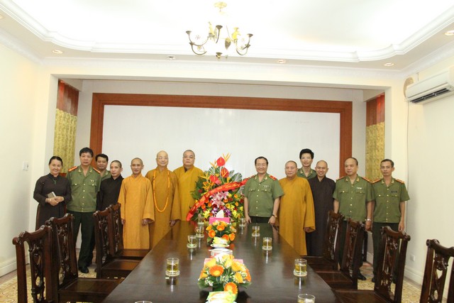 Nhân dịp này đoàn lãnh đạo chư tôn đức GHPGVN đã tặng hoa chúc mừng lãnh đạo tổng cục an ninh 2 ngày truyền thống lực lượng Công an nhân dân.