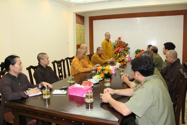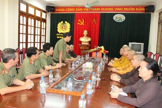 Đoàn GHPGVN do HT Thích Thanh Nhiễu – Phó chủ tịch TT HĐTS GHPGVN; HT.Thích Gia Quang – Phó chủ tịch HĐTS GHPGVN – Trưởng ban Thông tin Truyền thông TW GHPGVN và chư tôn đức đại diện văn phòng I TW GHPGVN. Tiếp đoàn có Thiếu tướng Tiến sĩ Bùi Mậu Quân – Phó tổng cục trưởng Tổng cục An ninh 2