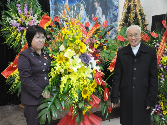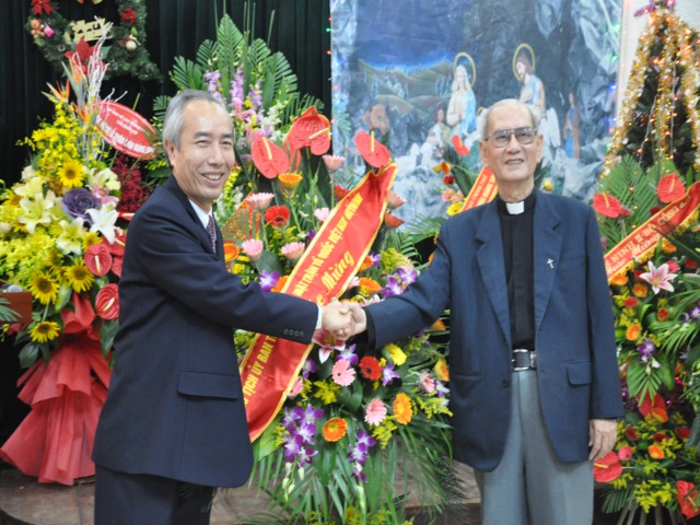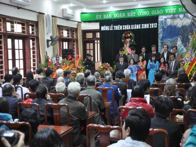 Nhân dịp này HT.Thích Thanh Nhiễu thay mặt TW GHPGVN tặng hoa chúc mừng tới Ủy ban Đoàn kết Công giáo nhân mùa Giáng sinh và năm mới 2013.