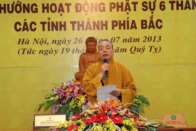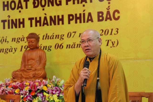 ĐĐ.Thích Đức Thiện – Phó Tổng thư ký kiêm chánh văn phòng I TW báo cáo sơ kết công tác Phật sự 6 tháng đầu năm 2013 của GHPGVN và triển khai phương hướng hoạt động Phật sư 6 tháng cuối năm 2013.