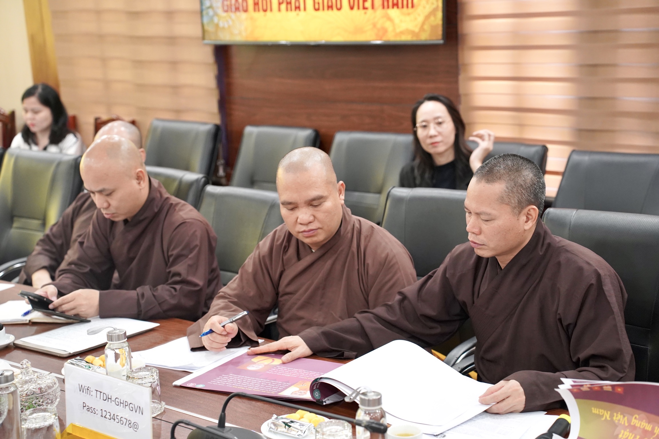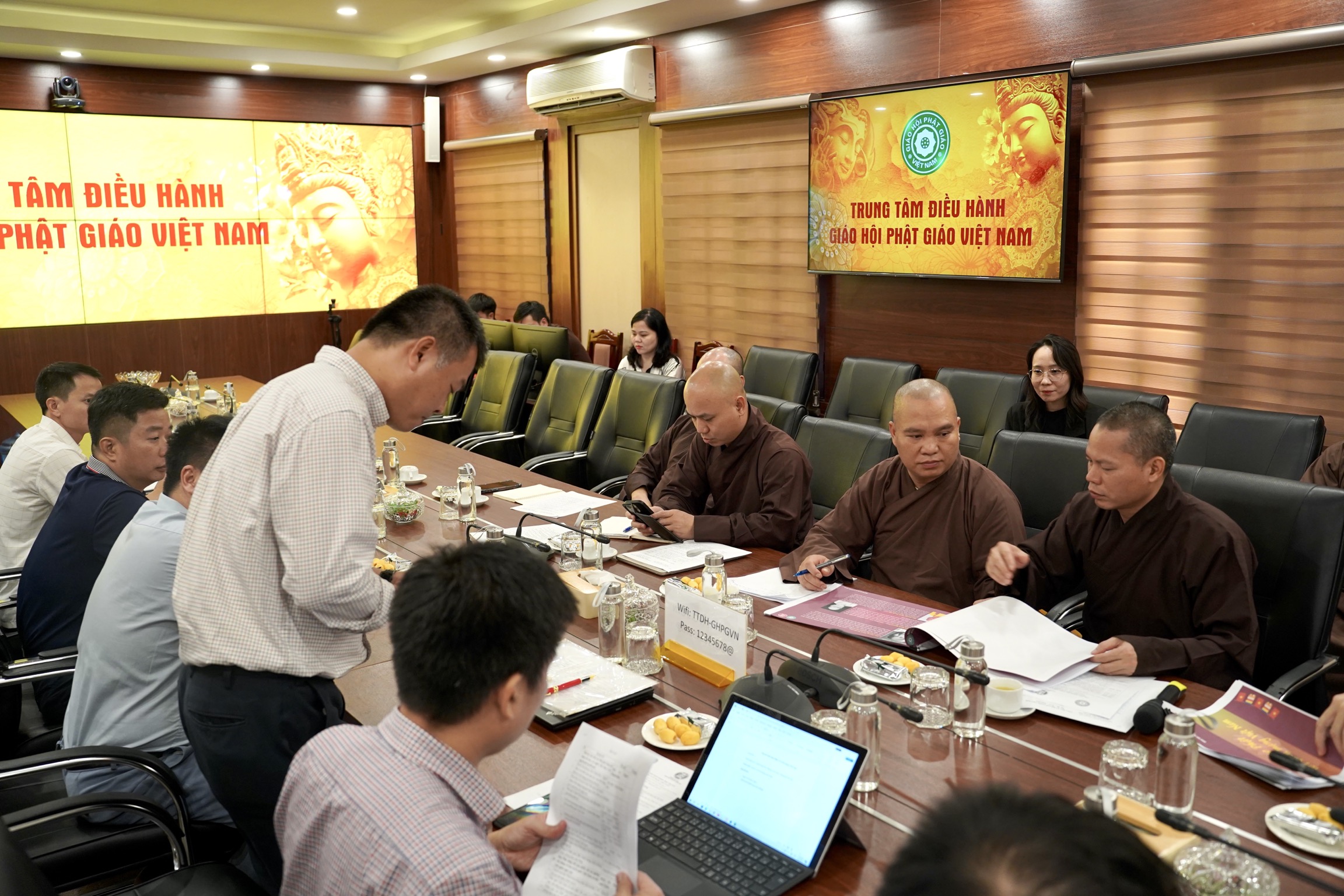 Cuộc họp có sự tham dự của Thượng tọa Thích Thanh Tuấn, Chánh Văn phòng 1 Trung ương GHPGVN, Đại đức Thích Nguyên Chính, UV Thư ký HĐTS, Phó chánh Văn phòng Thường trực TƯ GHPGVN; chư Tôn đức Phó Chánh văn phòng TƯ GHPGVN Thượng toạ Thích Quảng Tiếp, Thượng toạ Thích Đạo Thịnh, Đại đức Thích An Đạt cùng chư Tôn đức cán bộ văn phòng TƯ GHPGVN.