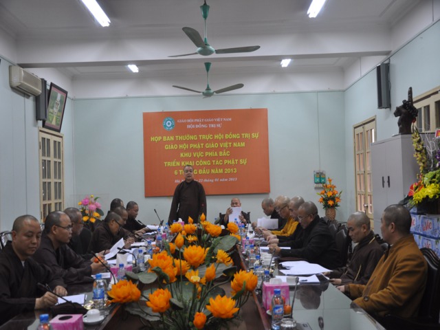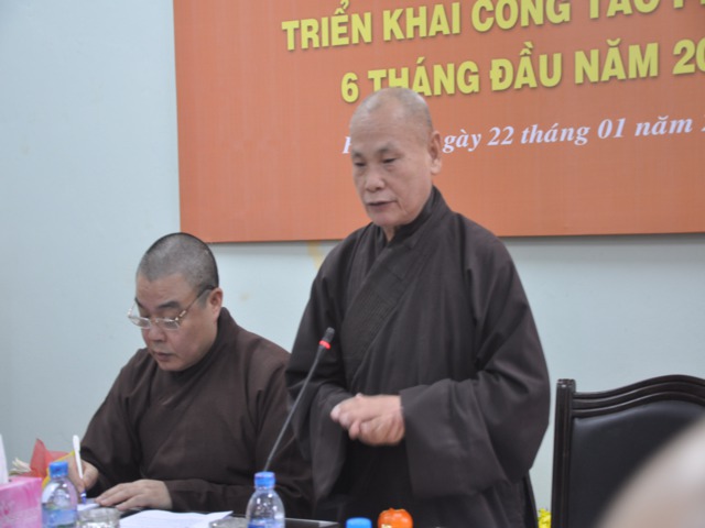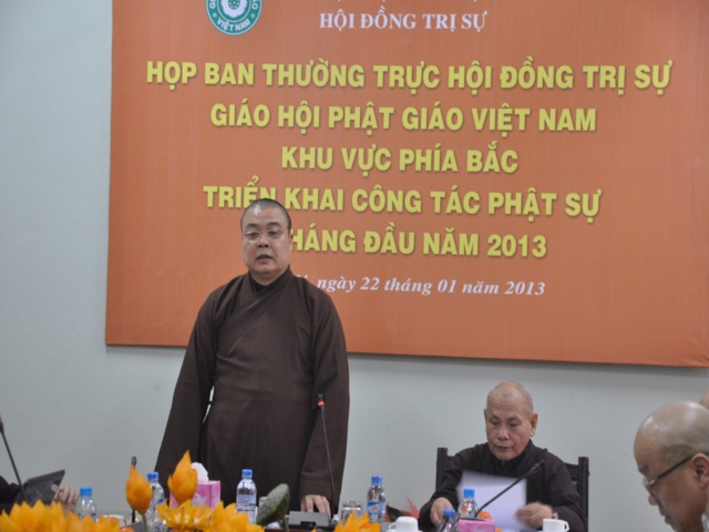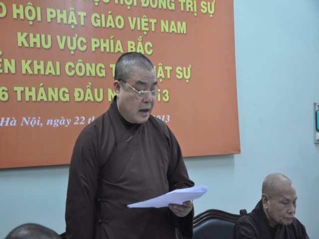 ĐĐ.Thích Đức Thiện phát biểu về cơ cấu tổ chức Văn phòng I TW GHPGVN và trình bày dự kiến kế hoạch hoạt động Phật sự của GHPGVN 6 tháng đầu năm 2013.