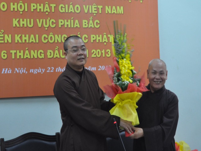 Nhân dịp này HT.Thích Thiện Nhơn Phó chủ tịch kiêm Tổng thư ký HĐTS GHPGVN phát biểu và tặng hoa chúc mừng chư Tôn đức Phó chủ tịch GHPGVN khu vực phía Bắc.