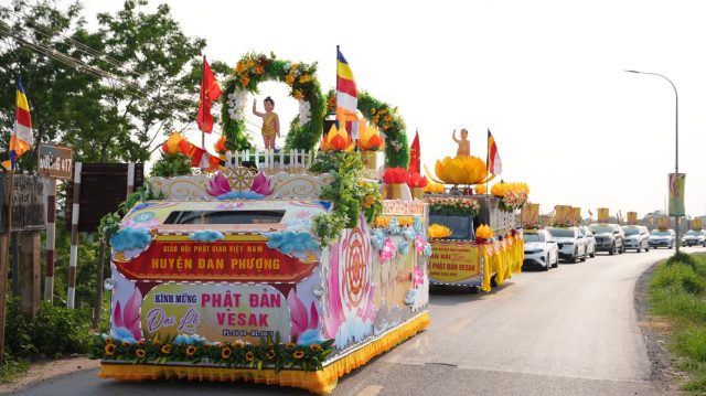 Đúng 14h30, đoàn rước xe hoa chính thức xuất phát, di chuyển qua các tuyến đường huyết mạch trên địa bàn huyện Đan Phượng. Tất cả đều mang chung một tấm lòng thành kính hướng về Đức Từ Phụ, lan tỏa thông điệp hòa bình và lòng từ bi đến với cộng đồng.