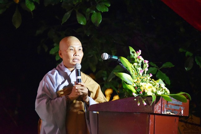 Cầu nguyện trong lễ tưởng niệm không chỉ là những người mất vì giao thông mà còn cầu nguyện cho những người mất vì thiên tai, địa tai, thủy tai, hỏa tai, nhân tai ….. Sự có mặt của tất cả Quý Tôn đức, các cấp chính quyền và đồng bào phật tủ đã nói lên giá trị nhân văn sâu sắc của người dân Việt. Thầy cũng đã khuyên tất cả mọi người khi tham gia giao thông hãy thắp sáng ngọn đèn tỉnh thức đi trong sự bình an, chánh niệm để tự bảo hộ cho mình và cho người. Khi đi trên mặt đất hãy đi như một đàn kiến, khi đi trên sông hãy đi như một đàn cá, khi bay trên bầu trời hãy bay như một đàn chim, chúng ta đi như một dòng sông để cùng nhau che chở và bảo hộ cho mình.