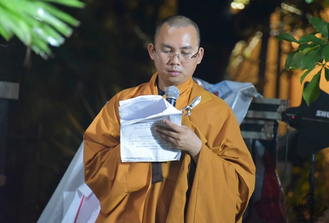 Thượng Tọa Thích Trí Chơn đã phát biều khai mạc thật xúc động trong đêm tưởng niệm. Thầy nói: Nghĩ nhớ đến người âm là một việc làm thiết thực, lo cho người âm là bổn phận của tất cả chúng ta. Bởi lẽ âm có siêu thì dương mới thới người âm có thanh thản an ổn ra đi thì người còn lại mới hạnh phúc được. Lễ cầu nguyện hôm nay cũng là tiếng chuông chánh niệm nhắc nhở người tham gia giao thông hãy cẩn trọng, tôn trọng tính mạng, tài sản của mình của người, của xã hội.