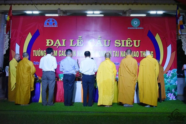 Lễ Cầu siêu thắp nến tưởng niệm các nạn nhân tai nạn giao thông với sự điều hành của Đại đức Thích Quảng Thức, Phó ban Thông tin Truyền thông Giáo hội Q. 12 và tiếp theo đó là khoá lễ cầu nguyện do Đại đức Thích Thiện Lập xướng lễ.