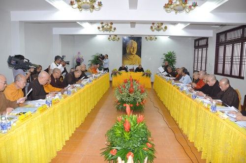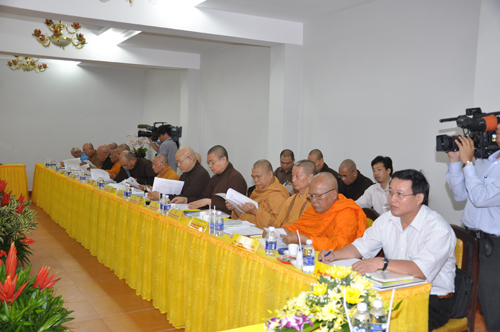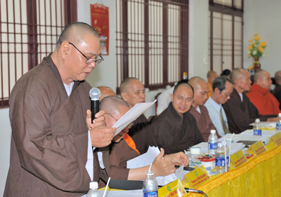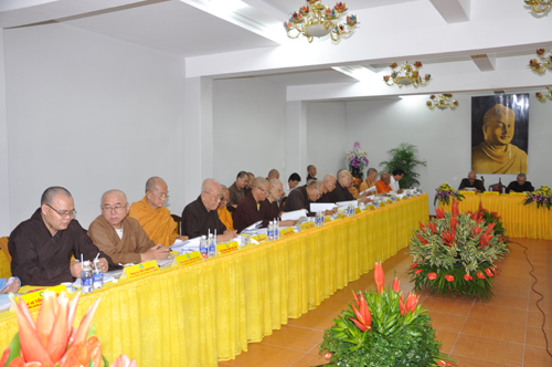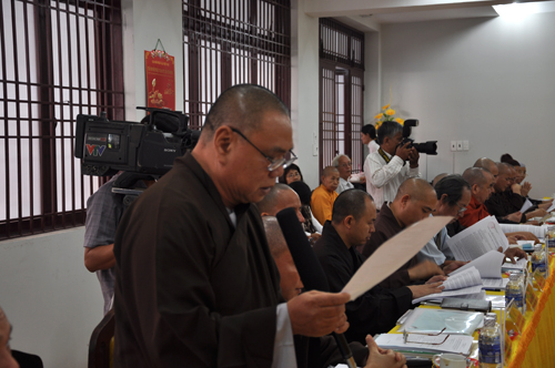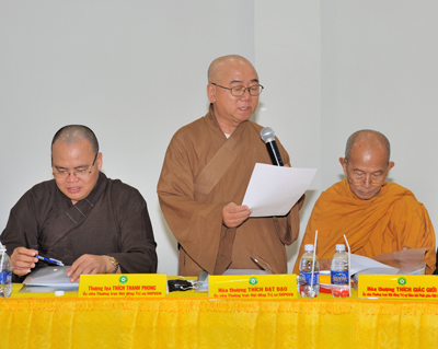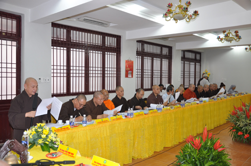 Trong phiên họp sáng nay, HT. Thích Thiện Nhơn – Phó Chủ tịch kiêm Tổng Thư ký HĐTS giới thiệu dự thảo Báo cáo Sơ kết công tác Phật sự 6 tháng đầu năm 2011 của GHPGVN.