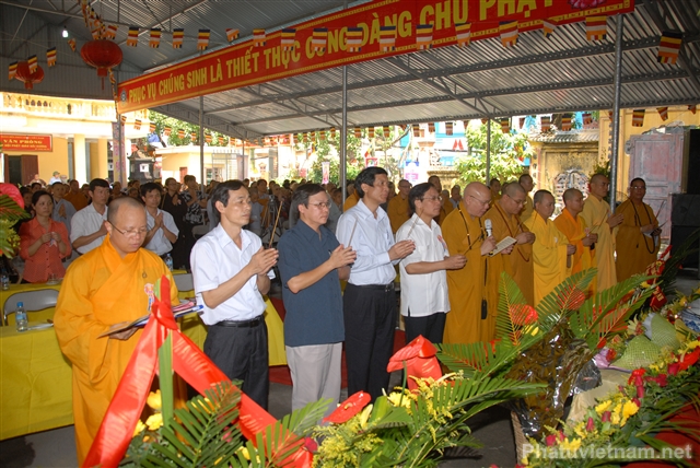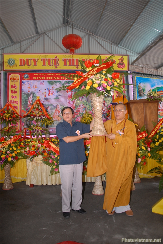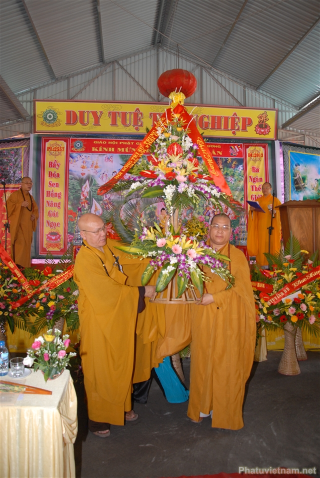 Chứng minh và tham dự Đại lễ có Hòa thượng Thích Quảng Tùng Phó chủ tịch HĐTS kiêm Trưởng ban từ thiện TWGHPGVN, thượng tọa Thích thanh Vân – trưởng BTS GHPGVN tỉnh cùng Chư tôn đức Ban thường trực và BTS Phật giáo 12 huyện, thị xã, thành phố và đông đảo hàng cư sĩ tín đồ Phật tử các đạo tràng trên địa bàn toàn tỉnh.