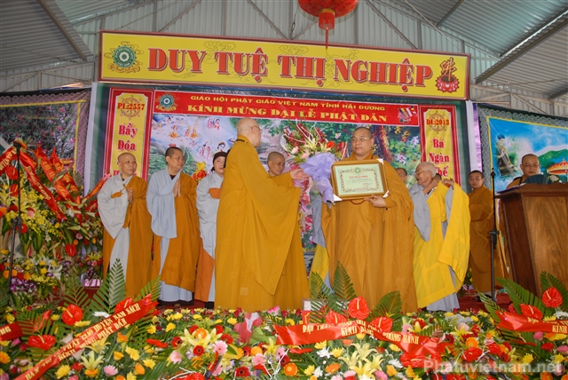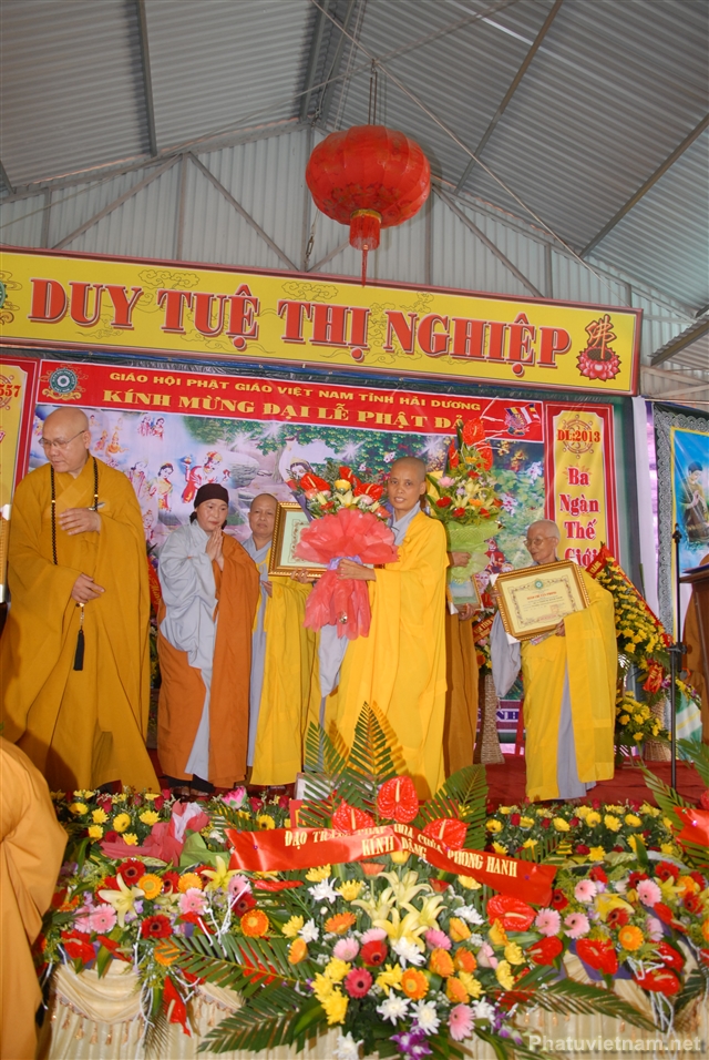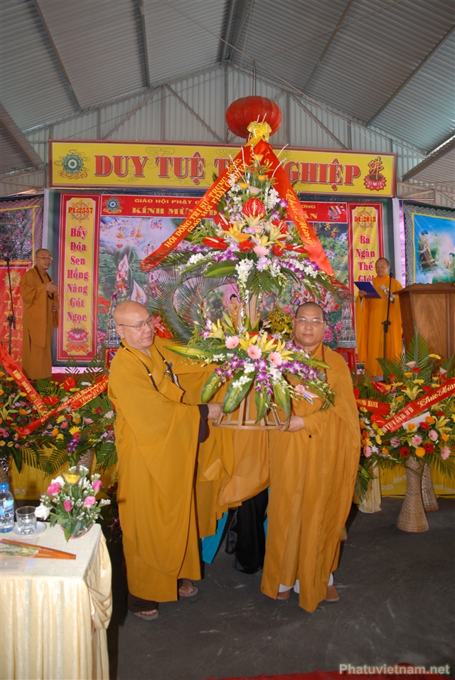 Tại chương trình mít tinh, sau phần cung tuyên thông điệp và diễn văn kính mừng Đại lễ Phật đản, ban tổ chức đã đọc thư của cụ Huỳnh Đảm – chủ tịch UBTWMTTQ Việt Nam chúc mừng đại lễ Phật đản của cả nước, Hoà thượng Thích Quảng Tùng đã thay mặt TWGH trao Giáo chỉ tấn phong giáo phẩm hàng Thượng toạ Ni trưởng, Ni sư cho chư tôn đức đã được tấn phong tại Đại hội Đại biểu Phật giáo Việt Nam nhiệm kỳ VII