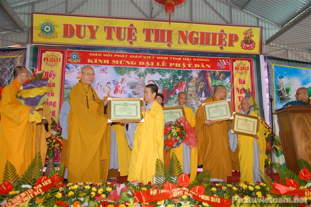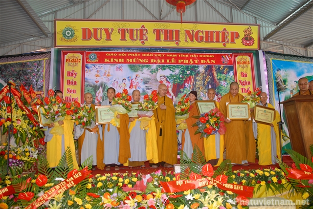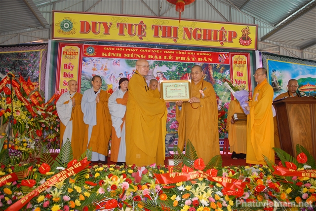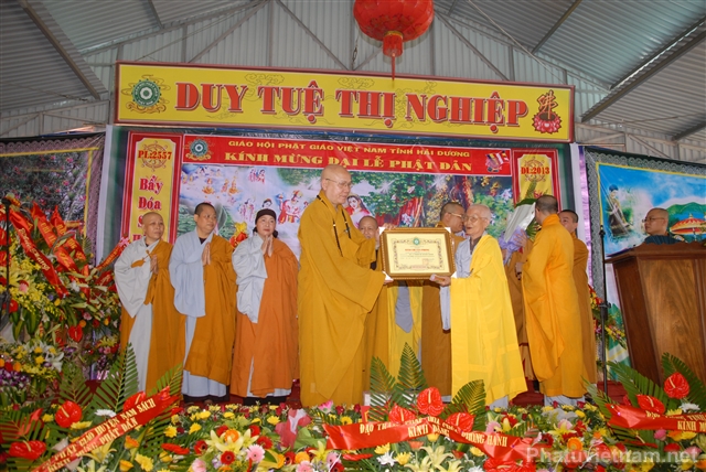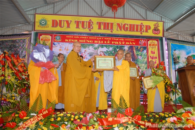 Cũng nhân dịp này, UBND tỉnh đã có công văn gửi các tổ chức chính trị xã hội về việc toàn dân chăm sóc Hội người cao tuổi. Ban trị sự GHPGVN tỉnh Hải Dương đã quyết định trích quỹ tỉnh hội số tiền 10.000.000 đồng ủng hộ quỹ người cao tuổi của tỉnh. Thay mặt các cấp chính quyền, UBMTTQ việt Nam tỉnh ông Trần Văn Duyệt đã phát biểu động viên Tăng Ni và tín đồ Phật tử thực hiện tốt lời Phật dạy”Từ bi hỉ xả ,vô ngã vị tha”. Đây cũng là chủ trương đường lối của Đảng và Nhà nước, chăm lo đến chính sách An sinh xã hội. Góp phần xây dựng xã hội dân chủ văn minh, tiến bộ