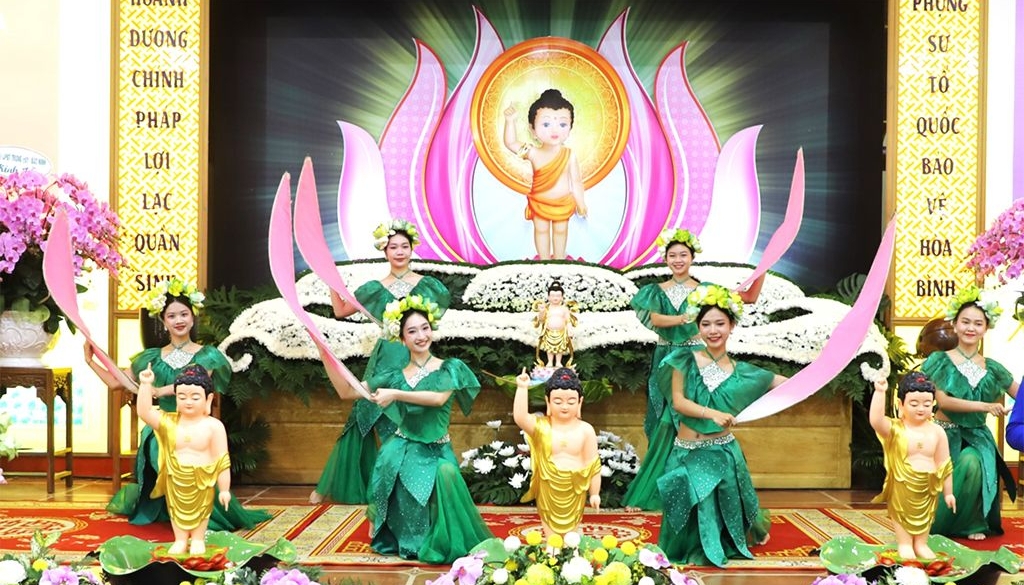 Các đại biểu cùng tăng, ni, phật tử đã cử hành nghi thức tụng niệm kính mừng Phật đản, nghi thức tắm Phật, cầu nguyện cho đất nước, thế giới hòa bình, ổn định và phát triển.