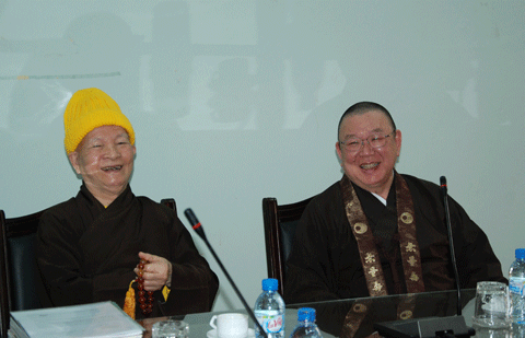 HT Thích Thanh Tứ – Phó chủ tịch thương trực HĐTS TW GHPGVN – Chủ tịch Hội nghị thượng đỉnh PGTG lần thứ VI và HT Hiroshi Fujikura – Tổng thư ký Thượng đỉnh Phật giáo