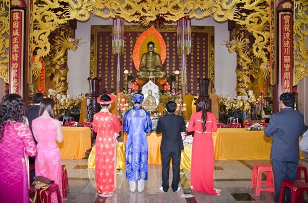 Các bạn trẻ đã phát nguyện sẽ sống đời sống vợ chồng hòa thuận, luôn thực hành theo những gì chư tôn đức đã hướng dẫn để xây dựng nên một gia đình an vui, hạnh phúc.