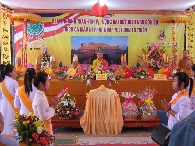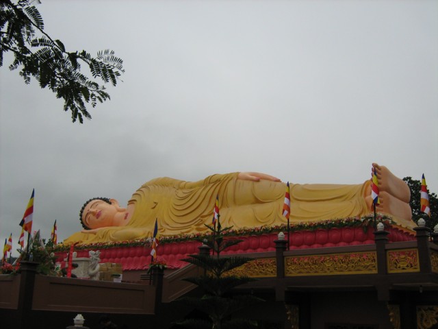 Công trình tượng đài Phật Thích Ca Nhập Niết Bàn do công ty Tư Vấn Thiết Kế Anh Tuấn đảm trách, Tầng dưới cao 4m rộng 700m2 làm nhà Giảng Đường và Phật Khánh trên là tòa sen cao 2m trên tòa sen là bảo tượng Phật Nhập Diệt dài 23m.