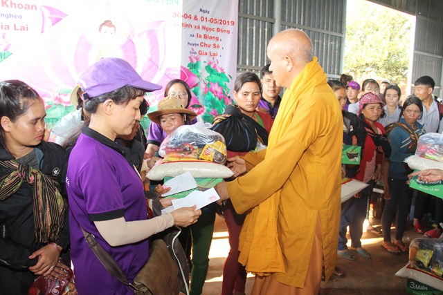Chương trình trao tặng 300 phần quà và khoan giếng được tổ chức tặng tâp trung tại tịnh xá Ngọc Đồng , xã Ia Blang, huyện Chư Sê, tỉnh Gia Lại gồm : đồng bào Ja Rai và Ba Na thuộc 13 làng và 6 xã : Pa Ko, H’ Lốp, Ia Blang, Ia Rong, Kong H’Tok, A Yun, huyện Chư Sê , tỉnh Gia Lai.