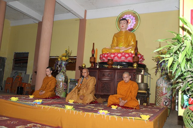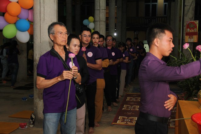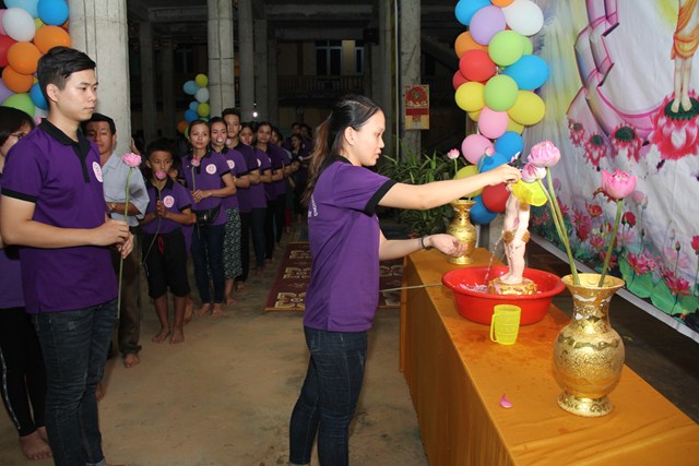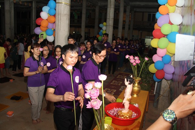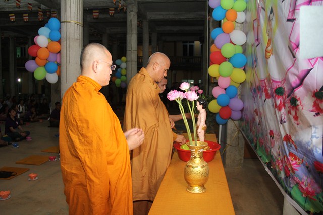 Trước khi bắt đầu đêm Hoa Đăng là lễ tác bạch cúng dường Tam Bảo tai tịnh xá Phú Cường. Trong đêm Hoa Đăng, hội chúng đã đươc TT Thích Giác Duyên chia sẽ Pháp thoại về Ý Nghĩa Phật Đản Sanh, sau đó hội chúng đã lần lượt dâng hoa và tắm Phật.