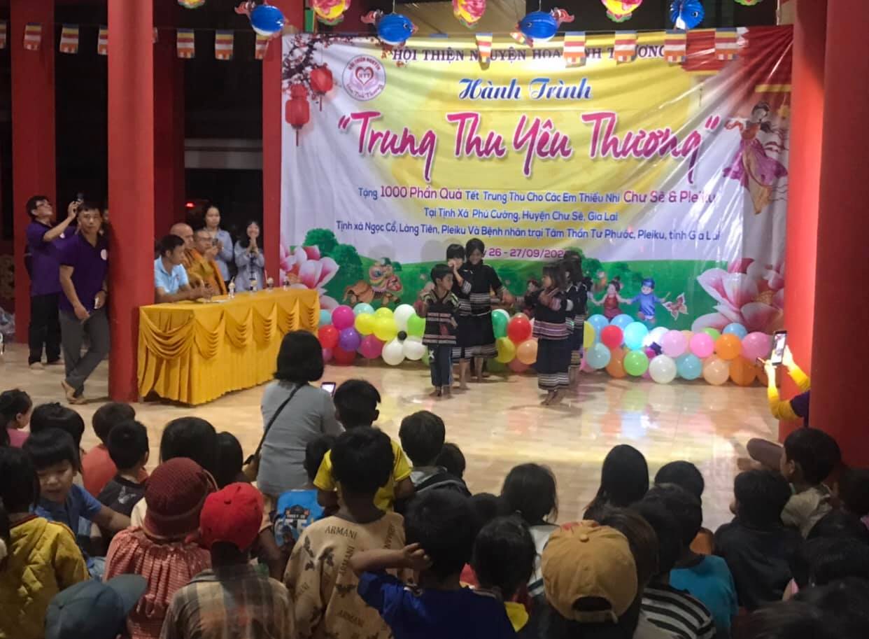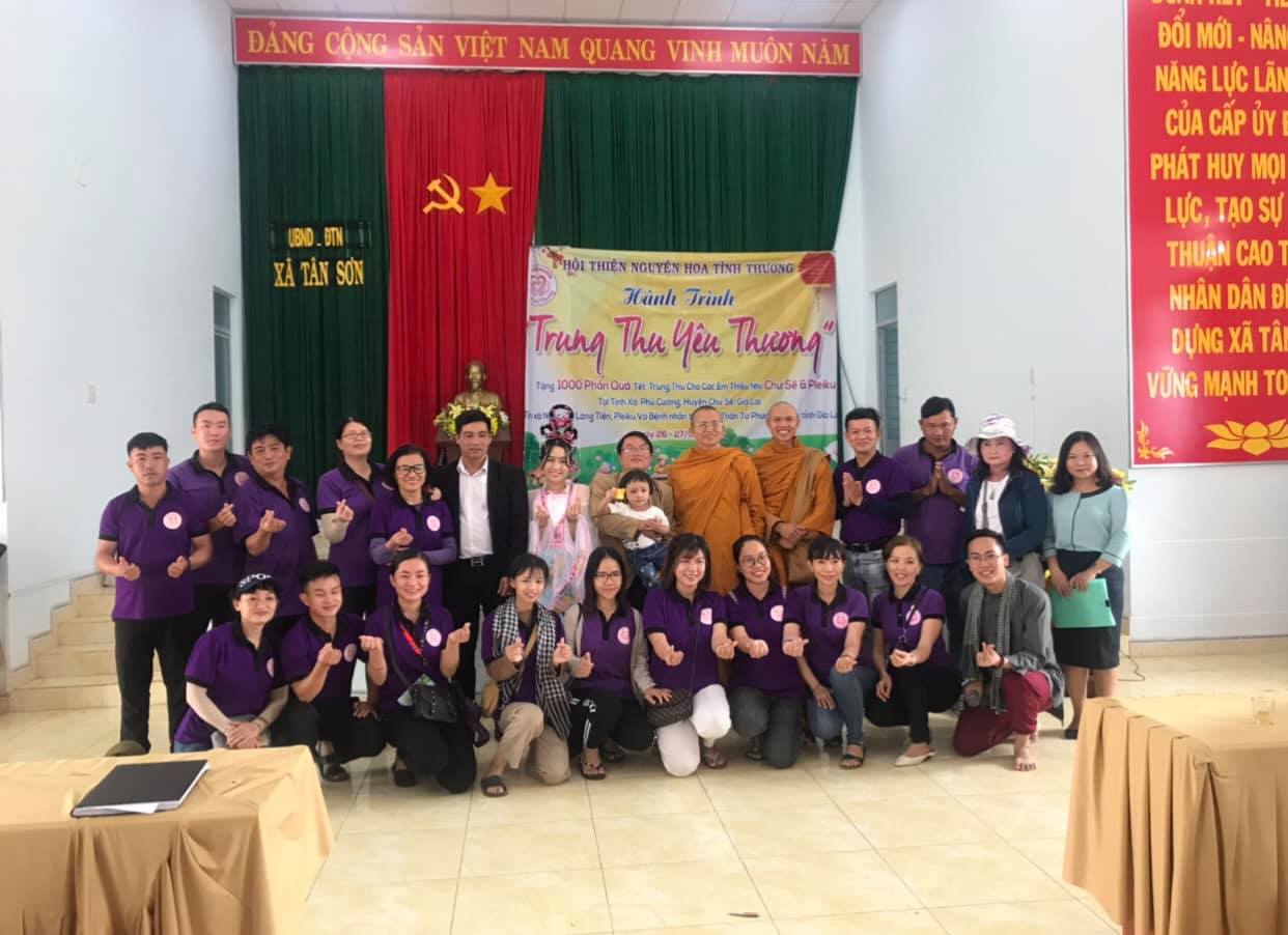Nhân dịp Tết Trung Thu 2020, Vào ngày 26-27/09/2020. Hội Thiện Nguyện Hoa Tình Thương đã tổ chức hành trình TRUNG THU YÊU THƯƠNG tặng 1500 phần quà Tết Trung Thu cho các em thiếu nhi nghèo, huyện Chư Sê và Pleiku, tỉnh Gia Lại, thăm và tặng quà cho bệnh nhân tâm thần tại Tâm Thần Tư Phước, Pleiku, Gia Lai.