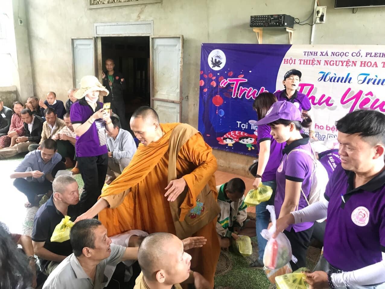 Sáng ngày 26/09/2020 ( mồng 10 tháng 8 ÂL ), Hội kết hợp cùng tịnh xá Ngọc Cổ, Pleiku thăm và trao tặng 160 phần quà cho bệnh nhân tâm thần tại trại Tâm Thần Tư Phước, Pleiku, tỉnh Gia Lai. Chương trình dưới sự chứng minh của Đại đích Giác Minh Nguyện-Tăng chúng tịnh xá Ngọc Cổ, Pleiku. Mỗi phần quà gồm 1 hộp cơm chay, và một phần quà Trung Thu bao gồm : Bánh Trung thu, sữa, bánh kẹo và khăn lau mặt,..và một phong bì 3 triệu đồng hỗ trợ thêm tiền gạo cho chị anh chị Tư Phước -Huỳnh Thị Hạt với tấm lòng Bồ Tát đã lập nên trại Tâm Thần Tư Phước nuội dưỡng các bệnh nhân tâm thần tại nơi đây.