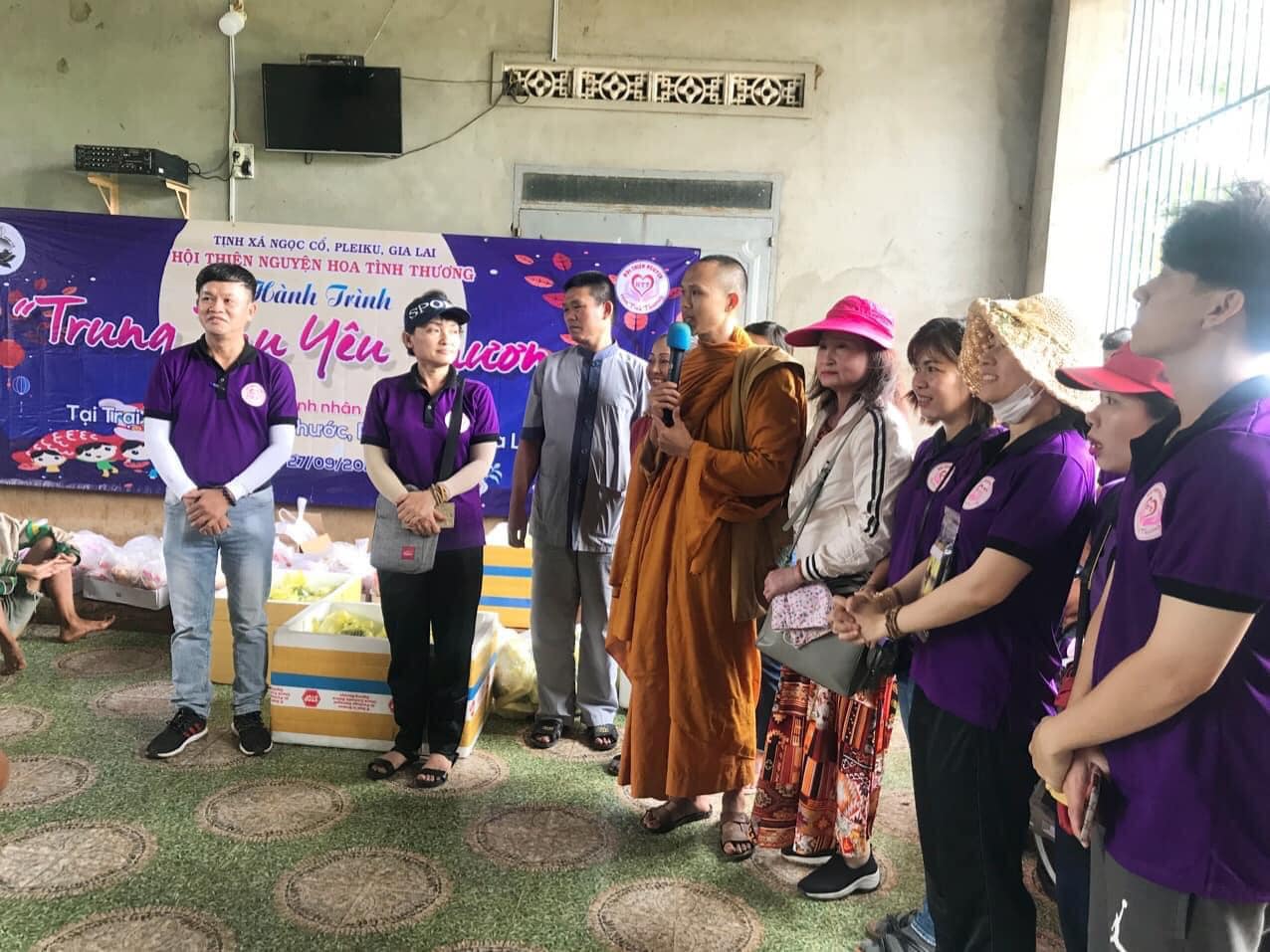 Hơn 50 thành viên Hội Thiện Nguyện Hoa Tình Thương, đại diện Quý MTQ đã tham dự hành trình. Hành trình dưới sự chứng minh của Thượng toạ Thích Giác Duyên – Phó BTS GHPGVN tỉnh Gia Lai, trụ trì tịnh xá Phú Cường, huyện Chư Sê, tỉnh Gia Lai; Thượng tọa Thích Giác Hiền-Phó trưởng BTS, kiêm Trưởng Ban Văn Hóa GHPGVN tỉnh Gia Lai, trụ trì tịnh xá Ngọc Cổ, Pleiku; Đại đức Thích Giác Minh Nguyên -Tăng chúng tịnh xá Ngọc Cổ, Pleiku, tỉnh Gia Lai.
