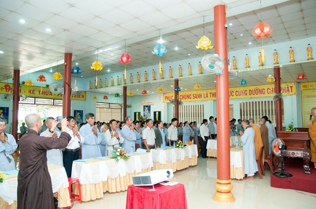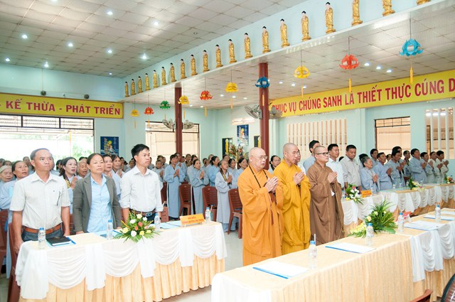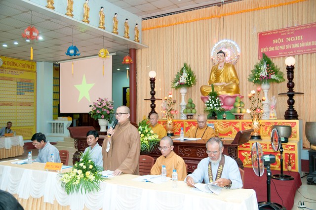 Sau đó, Hội nghị tiến hành tham luận. Đạo hữu Trần Thị Khá mạnh dạn phát biểu: “Mong quý cấp Chính quyền hãy quan tâm đến chúng tôi nhiều hơn nữa vì sự có mặt của các vị có ý nghĩa rất lớn đối với Phật tử chúng tôi. Nên quan tâm đi sâu vào việc giáo dục con người, Cùng hướng mọi người dân xây dựng địa phương, xây dựng Đất nước vững mạnh, nên lồng ghép cho mọi người hướng đến đời sống tâm linh”. Sau đó là ý kiến tham luận của các Đạo hữu Lê Thị Kỳ, Đạo hữu Phạm Thị Lan, Đạo hữu Phạm Tấn Đạt… có chung sự mong mỏi quý cấp Chính quyền trên địa bàn huyện quan tâm hơn nữa, tiếp tục ủng hộ Phật giáo huyện nhà. Thêm một vấn đè nữa là sự mong mỏi của các Đạo hữu ở các xã xa xôi như MOCDEN, IADIN về việc thành lập ngôi chùa tại các xã nói trên để các Phật tử dàng hơn trong việc tu tập, đáp ứng nhu cầu tâm linh của nhân dân trên địa bàn huyện.