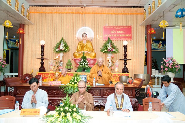 Sau thành công rực rỡ của Đại Hội Đại biểu Phật giáo huyện Đức Cơ nhiệm kỳ III (2016 – 2021). BTS GHPGVN huyện Đức Cơ bắt đầu thực hiện những phương hướng đã đề ra cho Nhiệm kỳ mới. Đặc biệt, trong nửa đầu năm 2017 BTS huyện Đức Cơ đã có những hoạt động Phật sự tích cực đối với Phật giáo huyện nhà, hoàn thành xuất sắc những nhiệm vụ BTS Tỉnh hội Phật giáo Gia Lai giao phó. Nhằm tổng kết, đánh giá kết quả những thành tựu đã đạt được. Đồng thời biểu dương, khen thưởng các tập thể, cá nhân có sự đóng góp tích cực trong các công tác Phật sự. Qua đó tiếp tục khơi dậy, cỗ vũ sự đoàn kết, phát huy mạnh mẽ tinh thần hy sinh phụng sự cho đạo pháp với phương châm: “Đạo pháp – Dân tộc – Chủ nghĩa xã hội”. Ngày 13.6.2017 nhằm ngày 19.05 Đinh Dậu, trong không khí trang nghiêm và tràn đầy đạo tình hoan hỷ, BTS GHPG huyện Đức Cơ trang nghiêm và long trọng tổ chức Hội nghị Sơ kết hoạt động công tác Phật sự 06 tháng đầu năm và đề ra Phương hướng hoạt động 6 tháng cuối năm 2017.