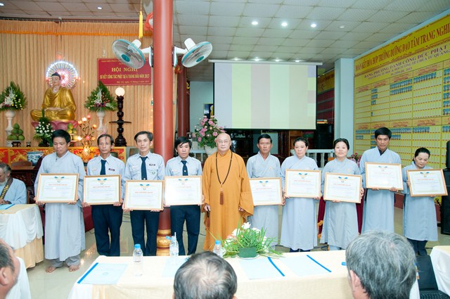 Đổng thời, Chư Tôn Đức Chứng minh trong Ban thường trực BTS GHPGVN tỉnh Gia Lai có Quyết định khen thưởng và trao bằng Tuyên dương công đức đến BTS GHPGVN huyện Đức Cơ có đóng góp tích cực trong công tác tổ chức Đại lễ Phật đản. Nhân đó, để khích lệ tinh thần các Phật tử có công trong việc tổ chức Đại Lễ Phật Đản tại huyện nhà, BTS PG huyện có món quà tinh thần để tuyên dương công đức các Phật tử.