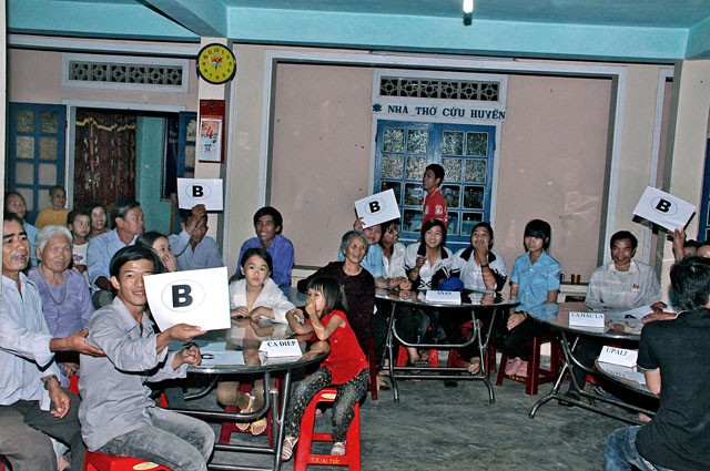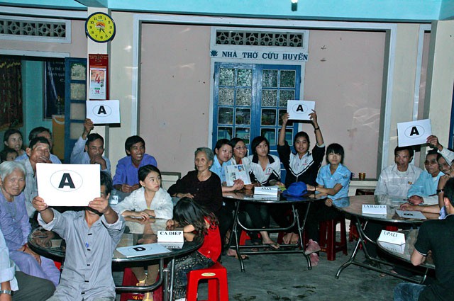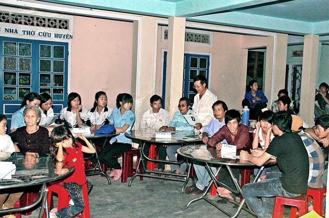 Mặc dù trời mưa rất lớn vào lúc 17h 30’ là hội thi giáo lý với sự tham gia của các em nhỏ chỉ mới 8 tuổi đến cụ già tóc trắng đã 84 tuổi cũng vô cùng hân hoan tham dự.