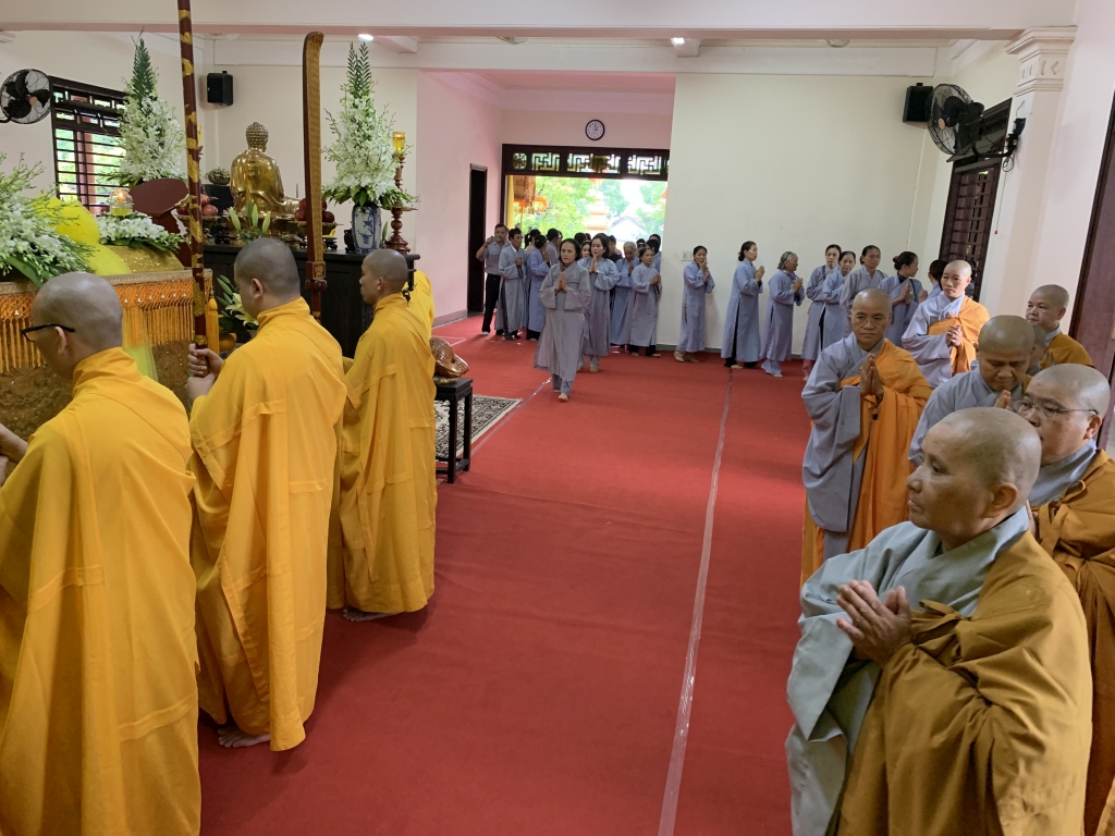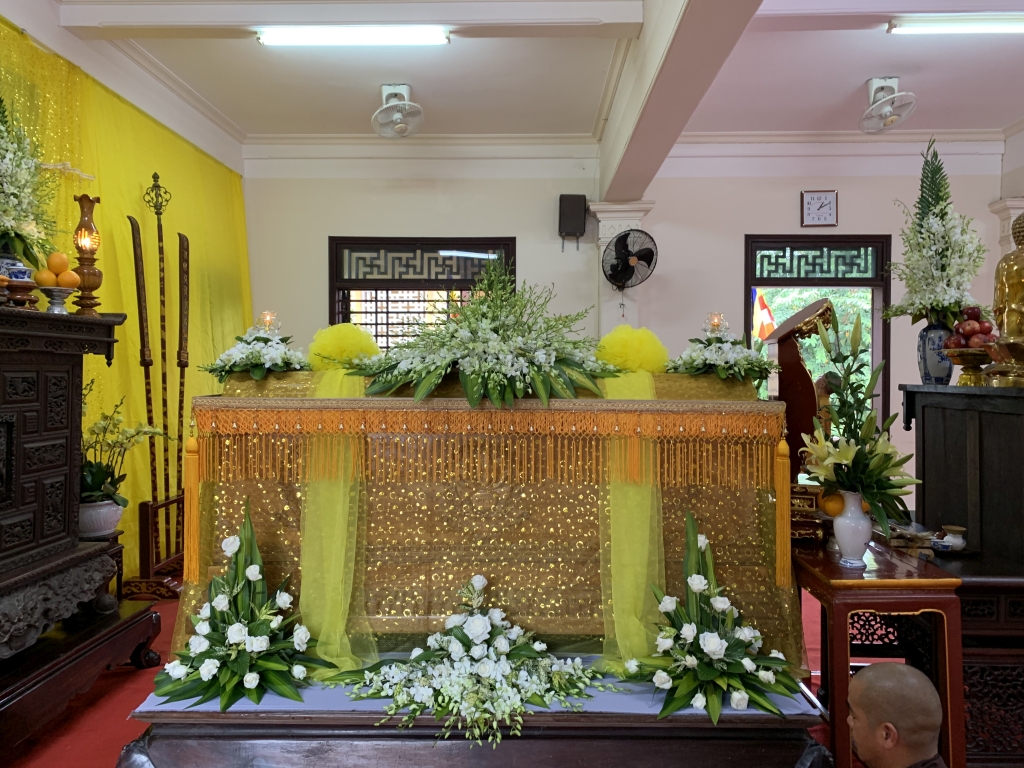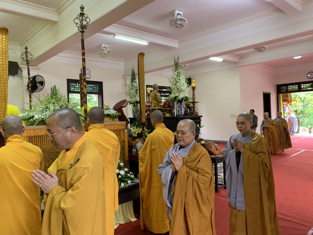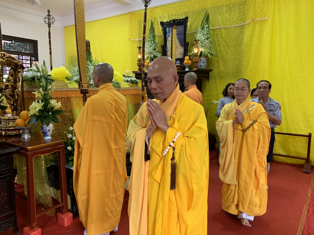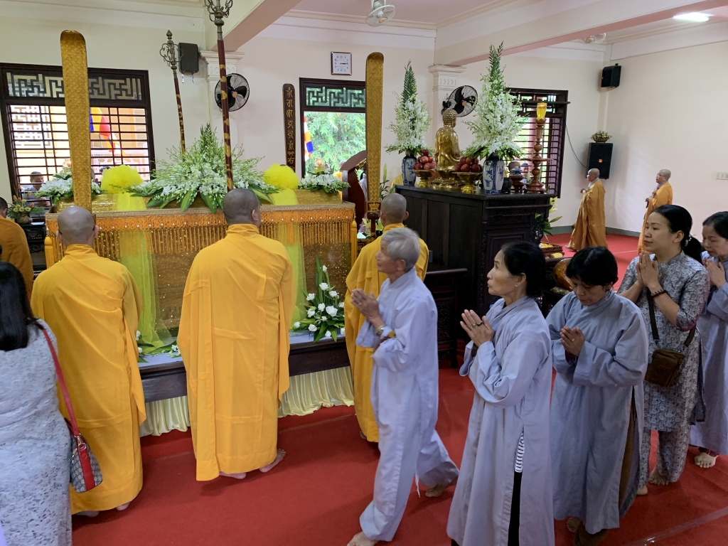 Không cờ phướn, băng rôn, không tiếp lễ, không lễ vật, vòng hoa, các đoàn tới viếng trang nghiêm đỉnh lễ giác linh trưởng lão, nhiễu kim quan và ra về.
