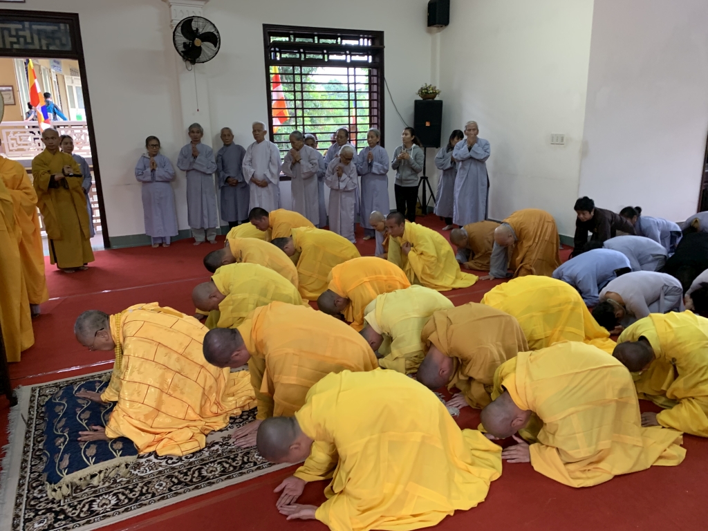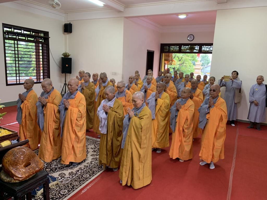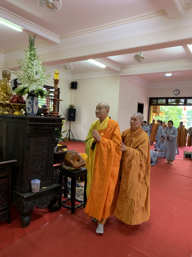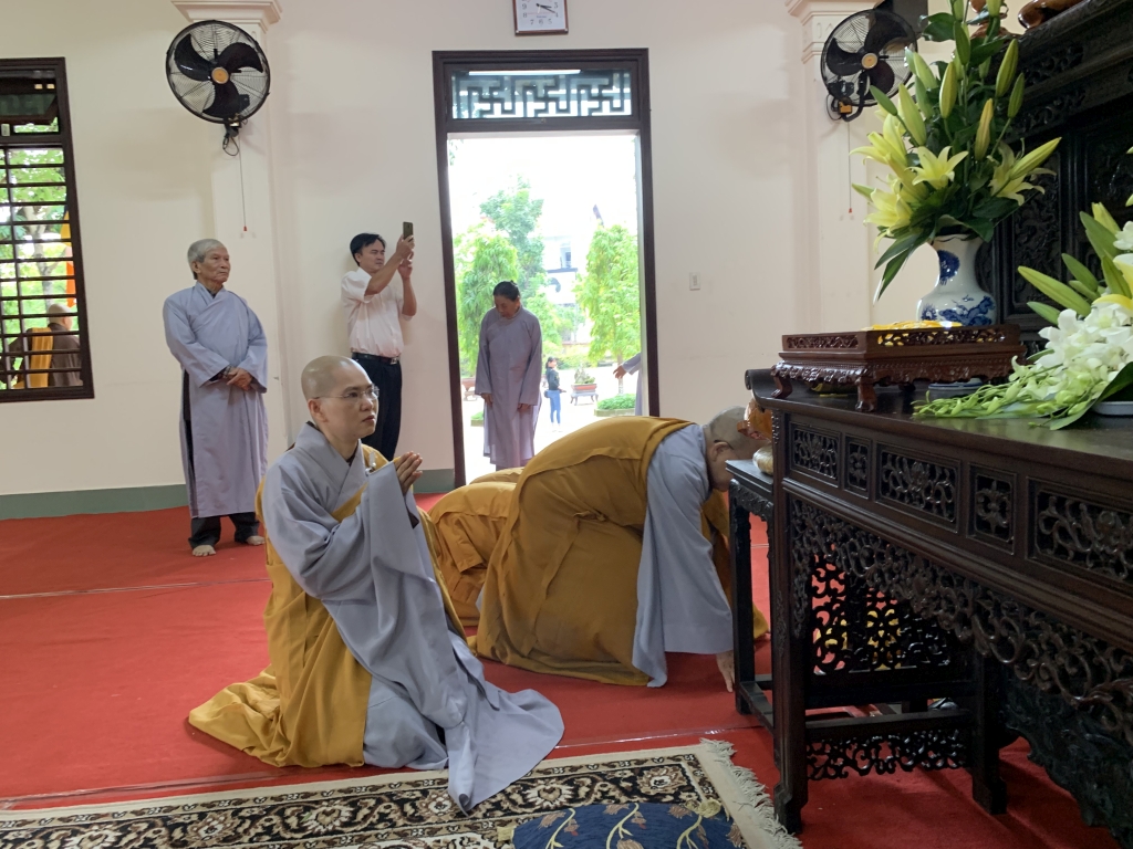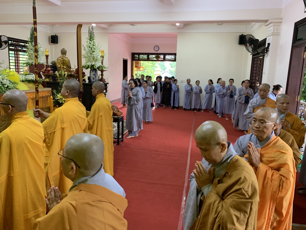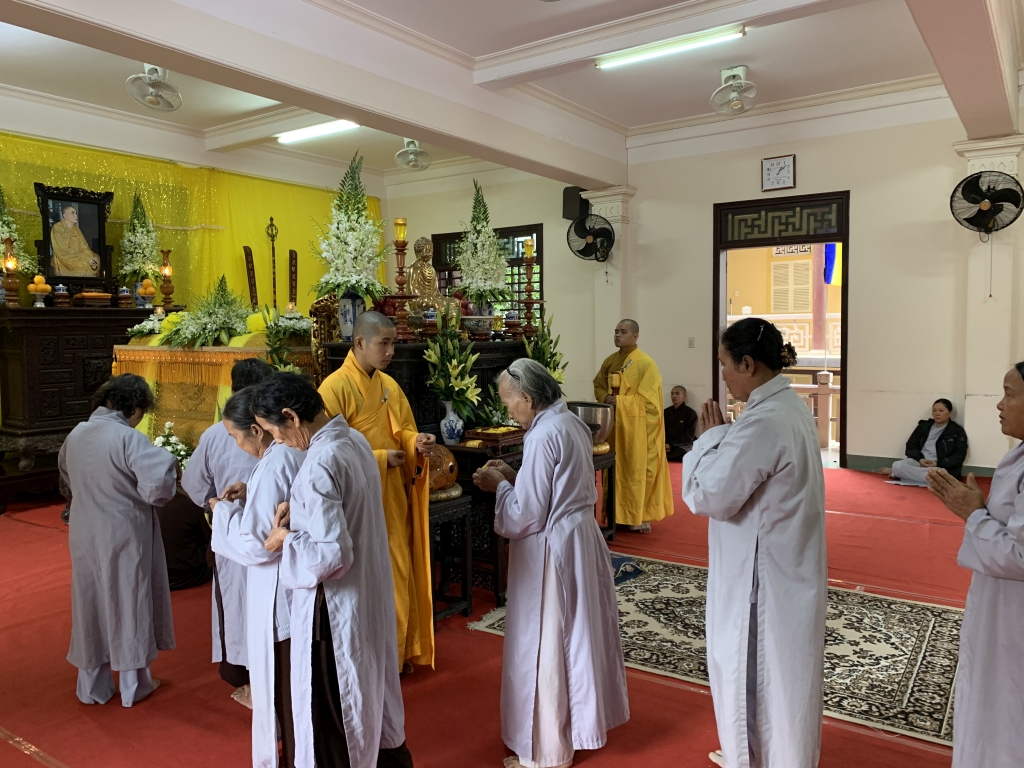 Không cờ phướn, băng rôn, không tiếp lễ, không lễ vật, vòng hoa, các đoàn tới viếng trang nghiêm đỉnh lễ giác linh trưởng lão, nhiễu kim quan và ra về.
