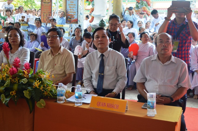 Quan khách tham dự có Ông Nguyễn Hữu Dinh- Phó ban Tôn giáo tỉnh Khánh Hòa; Ông Nguyễn Hữu Thắng – Phó Bí thư Thành Ủy, tp.Nha Trang, lãnh đạo các ban ngành tỉnh, thành phố và xã Vĩnh Lương, đại diện Tôn giáo bạn cùng hang nghìn nam, nữ Phật tử khắp các miền, tịnh xá xa, gần tham dự.