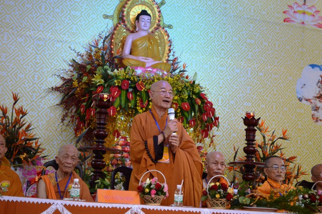 Ông Nguyễn Hữu Dinh- Phó Trưởng Ban Tôn giáo Khánh Hòa phát biểu chúc mừng đại lễ Vu Lan- Tự tứ, chúc Chư Tôn thiền đức Tăng Ni GHPGVN tỉnh Khánh Hòa và Giáo đoàn III có them một tuổi hạ, góp phần trưởng dưỡng đạo tâm, trang nghiêm giáo hội. Ban đạo từ HT.Thích Ngộ Tánh tán thán chư Tôn thiền đức Tăng Ni và Phật tử Giáo đoàn III đã tổ chức Đại lễ Vu Lan – tự tứ long trọng, trang nghiêm, tán thán tinh thần tu học của hàng xuất gia sau 3 tháng an cư, trau dồi giới định tuệ để thành tựu đạo nghiệp giải thoát, và khích lệ phật tử đã câu hội tham dự đại lễ Tự tứ Tăng – Vu lan báo hiếu. Đồng thời cám ơn các cấp chính quyền đã giúp đở tạo điều kiện cho tổ đình Nam Trung, Tịnh xá Ngọc Tòng tổ chức ngày Đại lễ thành tựu viên mãn.