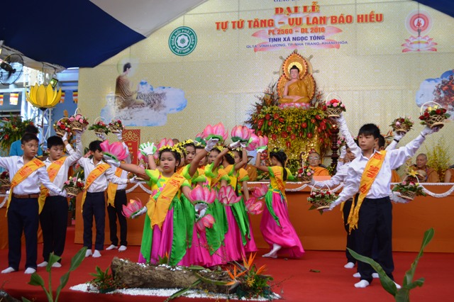 Sau phút niệm Phật cầu gia bị, chào đạo kỳ, phút mặc niêm tưởng nhớ Tứ trọng ân..Các em Phật tử tịnh xá Ngọc Tòng thành kính dâng hoa cúng dường lên chư Phật và chư Tôn Thiền đức. Hòa thượng Giác Phùng- Phó BTS GHPGVN tỉnKhánh Hòa- trụ trì tịnh xá Ngọc Tòng- Trưởng Ban tổ chức đại lễ tuyên đọc điễn văn khai mạc. Theo đó, theo truyền thống Phật tăng xưa, khi đức Phật còn tại thế, sau ba tháng an cư kiết hạ. chư Tăng Ni chuyên tâm trau dồi giới đức, hành trì tam vô lậu học – giới định tuệ, đến kỳ mãn hạ đại chúng tổ chức lễ Tự tứ tác pháp sám hối những điều lỗi lầm, nhờ đại chúng chỉ cho những lỗi lầm, để thân tâm thanh tịnh, giới đức tăng trưởng.