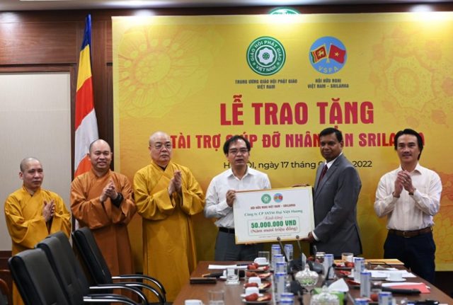 Hội Hữu nghị Việt Nam – Sri Lanka thuộc Liên Hiệp các tổ chức Hữu Nghị Việt Nam, Giáo hội Phật giáo Việt Nam vừa trao tặng số tiền 1 tỷ đồng gửi tới những người dân Sri Lanka. Số tiền này đã được Ban Tổ chức gửi tới Đại sứ quán Sri Lanka tại Hà Nội.