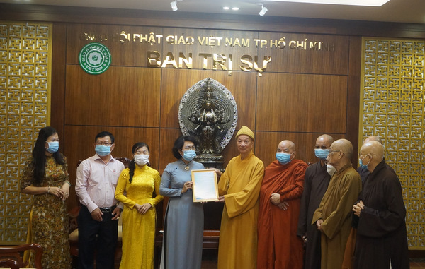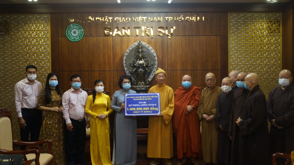 Tại buổi lễ, Hòa thượng Thích Trí Quảng, Phó Pháp chủ Hội đồng Chứng minh Giáo hội Phật giáo Việt Nam, Trưởng Ban Trị sự Giáo hội Phật giáo Việt Nam Thành phố Hồ Chí Minh đã trao cho bà Tô Thị Bích Châu, Chủ tịch Ủy ban Mặt trận Tổ quốc Việt Nam Thành phố Hồ Chí Minh số tiền 1 tỷ đồng được tăng ni, phật tử tại Thành phố Hồ Chí Minh đóng góp hỗ trợ Thành phố trong công tác phòng, chống COVID-19.