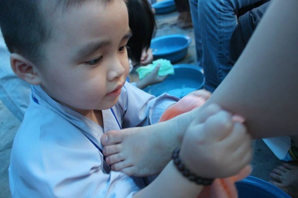 Các bé thì thút thít khóc vì lòng thương cảm khi xem phim tranh cát “Đứa bé mồ côi”, các phụ huynh thì lắng lòng xúc động rơi lệ khi nhìn thấy cảnh “các thiên thần bé bỏng” bưng nước rửa tay chân cho mình, rồi ôm hôn, khoanh tay nói lời “Cám ơn” và bưng cơm mời Cha Mẹ cùng ăn …