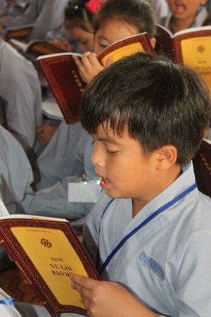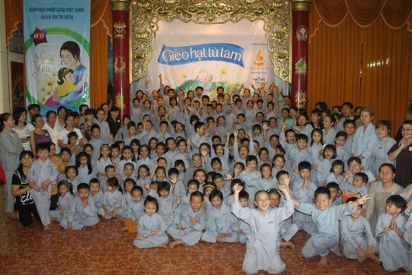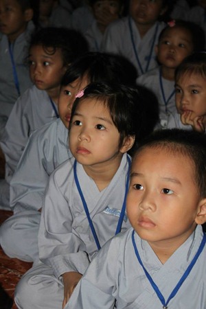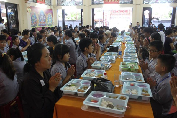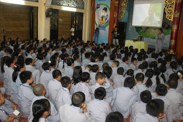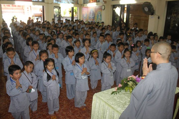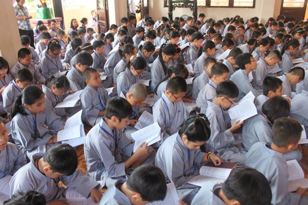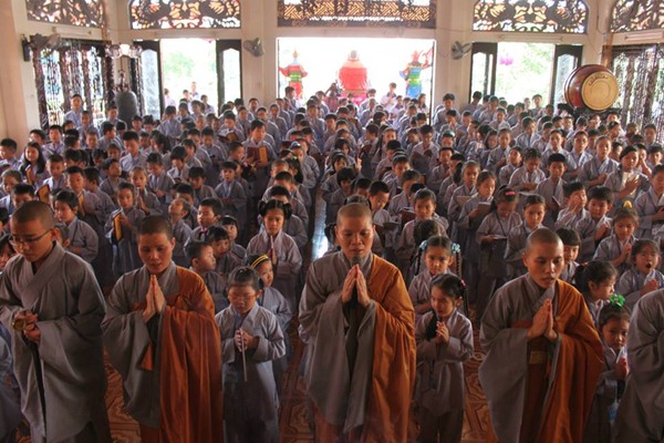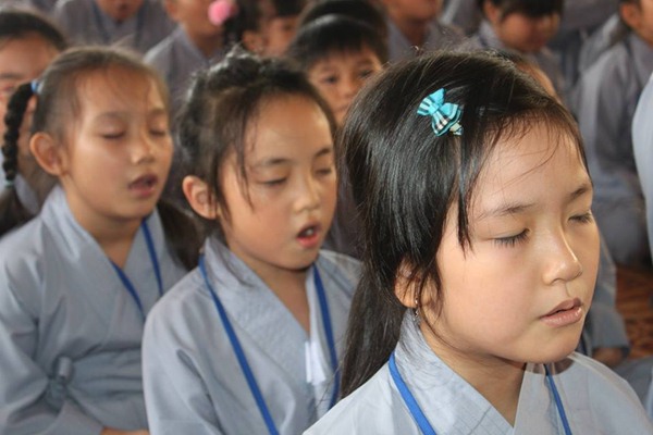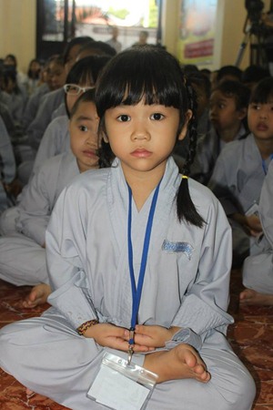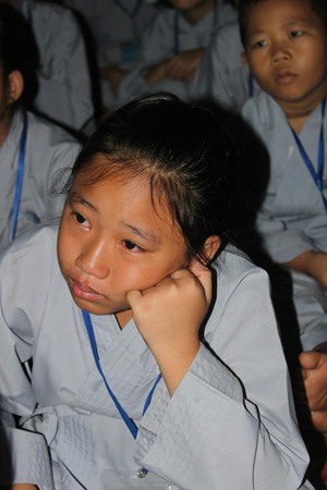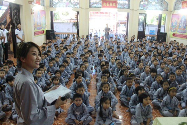 Đặc biệt trong khóa tu kỳ này, 300 tu sinh và 300 phụ huynh cùng được nghe “Cô giáo Gieo Hạt Từ Tâm” Thích Nữ Huệ Đức thuyết pháp về gương hiếu hạnh của Bồ-tát Mục Kiền Liên và tụng kinh Vu Lan.