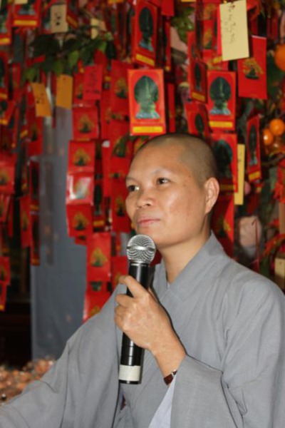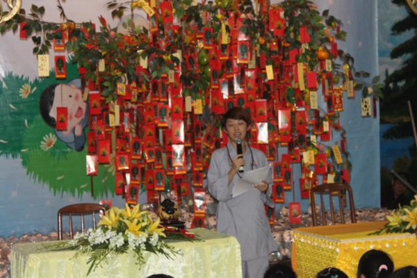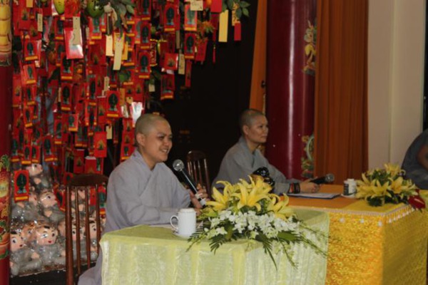 07h50: Sư cô Thích Nữ Hương Nhũ thuyết giảng pháp thoại với chủ đề Tâm Xuân, thông điệp yêu thương nhắn gởi: “con cái chính là mùa xuân của cha mẹ – và cha mẹ chính là mùa xuân của các con”. Các bạn trẻ và tất cả chúng ta khi cười thì ai cũng tươi đẹp, nhưng cười phải đúng lúc – đúng chỗ phù hợp với hoàn cảnh không gian thời gian cho phép thì nụ cười đó mới thật sự có giá trị chân thật. Cuộc sống thì vô thường – chúng ta từ vô minh đến cõi ta bà và vô sản sinh nhiên, cho nên mọi khổ đau – vui buồn hay ganh ghét – oán thù đều do chính Tâm ta tạo ra. Liệu chăng để tâm hồn như tâm xuân thì ai trong chúng ta sẽ làm được đây?