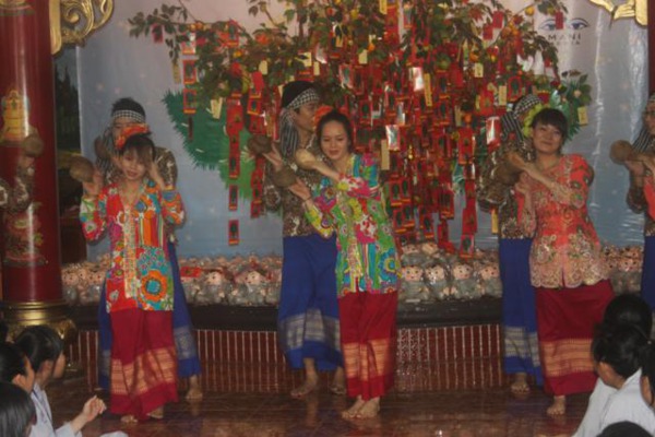 11h20: Sau phần múa Rồng và Múa Gáo Dừa Dân Tộc Khmer do các bạn trẻ tình nguyện viên thể hiện, chương mục văn nghệ hát về xuân được tu sinh đón nhận nồng nhiệt do ca sĩ Phương Linh – Nhóm Mắt Ngọc – Tiến Đạt – Sĩ Luân thể hiện.