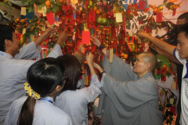 12h00: Tu sinh hái lộc, mỗi bạn được nhận 01 chú tiểu nhồi bông – 01 lịch năm mới 2013 – 02 gáo dừa – đĩa gieo hạt từ tâm kì 8.