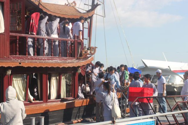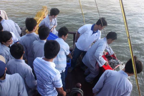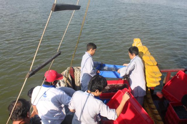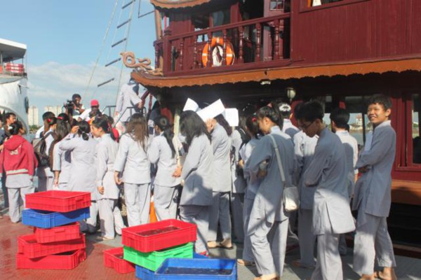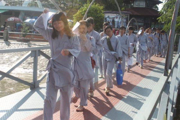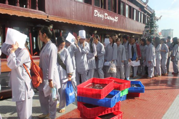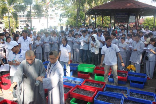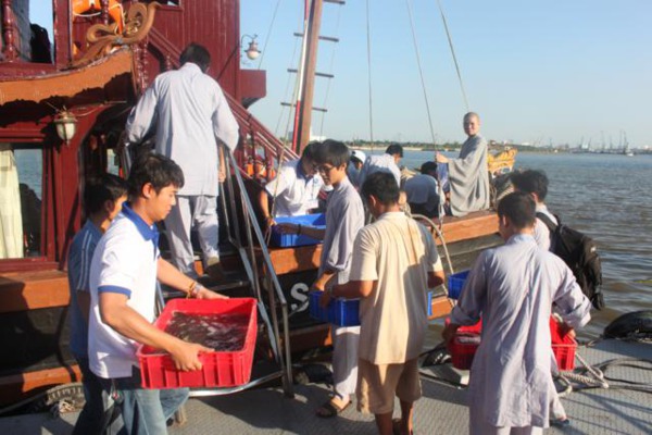 14h20: Đi phóng sanh trên sông Sài Gòn tại bến tàu Đông Dương.
