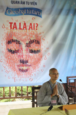 Mở đầu khóa tu, Sư cô Huệ Đức hướng dẫn phần oai nghi (chắp tay – cúi chào), và bắt đầu thuyết giảng pháp thoại với chủ đề “Ta Là Ai?”, đó là câu hỏi ít nhiều người luôn tự hỏi mình như vậy. Theo sư cô Huệ Đức, “Phật giáo cho rằng, các pháp được hình thành bởi duyên sinh, con người là do tinh cha huyết mẹ và nghiệp thức hiệp thành, tất cả là một tổ hợp duyên sinh mà theo giáo lý nhà Phật đó là Ngũ uẩn (năm yếu tố hợp thành gồm sắc, thọ, tưởng, hành, thức) hay thất đại (địa, thủy, hỏa, phong, không, kiến, thức) tạo nên một con người gồm hai yếu tố sinh lí và tâm lí. Do vậy, không có cái gì là Ta hay của Ta mà chỉ là sự vay mượn hợp thành của các duyên, do vậy ta cần phải biết tri ân và trân quý chính mình, làm chủ lấy chính mình.” Tiếp theo là chuyên mục “Lắng nghe để hiểu” do Đại đức Thích Quảng Tánh (biên tập viên và là chuyên viên tổ tư vấn báo giác ngộ) đảm nhiệm vai trò tư vấn, trả lời các câu hỏi thắc mắc về Phật giáo và cuộc sống do các bạn trẻ đưa ra, trong đó có nhiều câu hỏi khiến chúng tôi suy nghĩ rất nhiều, chẳng hạn như vấn đề “hôn nhân khác tôn giáo, hay khi cha mẹ không muốn cho con em mình đi chùa, hay làm cách nào chuyển hóa sân hận?”.