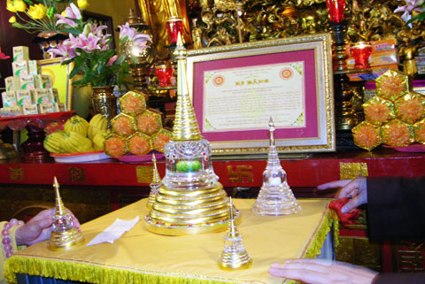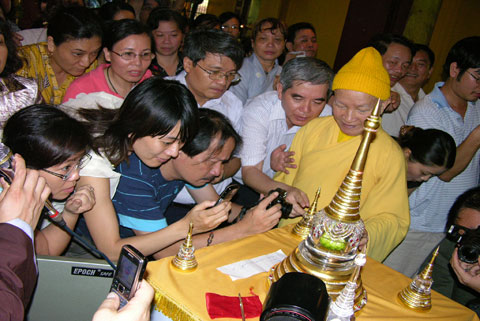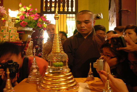 Buổi lễ đặt dưới sự chứng minh của Hoà thượng Thích Thanh Tứ- Phó chủ tịch thường trực HĐTS TW GHPGVN- Viện chủ tùng Lâm Quán Sứ cùng chư tôn đức Tăng Tùng Lâm Quán Sứ và đông đảo các báo đài cùng về chiêm bái.