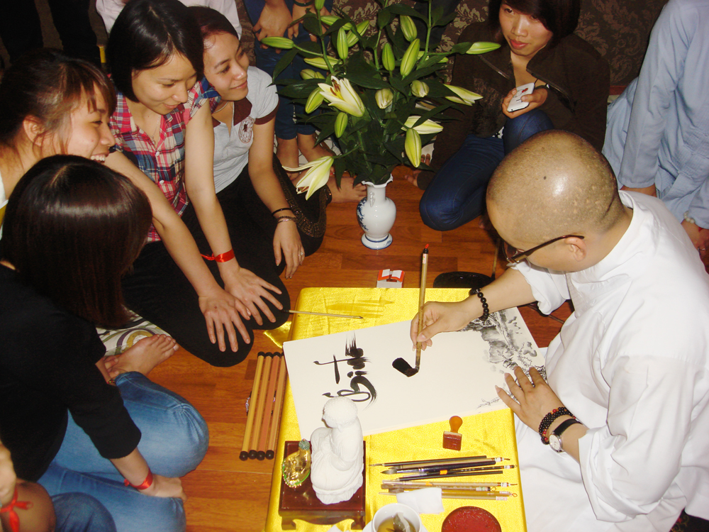 Đặc biệt cuối buổi pháp thoại, Đại Đức Giảng Sư đã hoan hỷ gieo duyên cho các Phật tử tham dự những bức Thư Pháp thật ý nghĩa. Thầy chia sẻ:chữ Tâm, chữ Phật, chữ An, chữ Xả …như niềm mong muốn của thầy dành cho các bạn trẻ khi Tâm luôn hướng Phật sẽ có được sự an lạc, hạnh phúc trong cuộc sống.