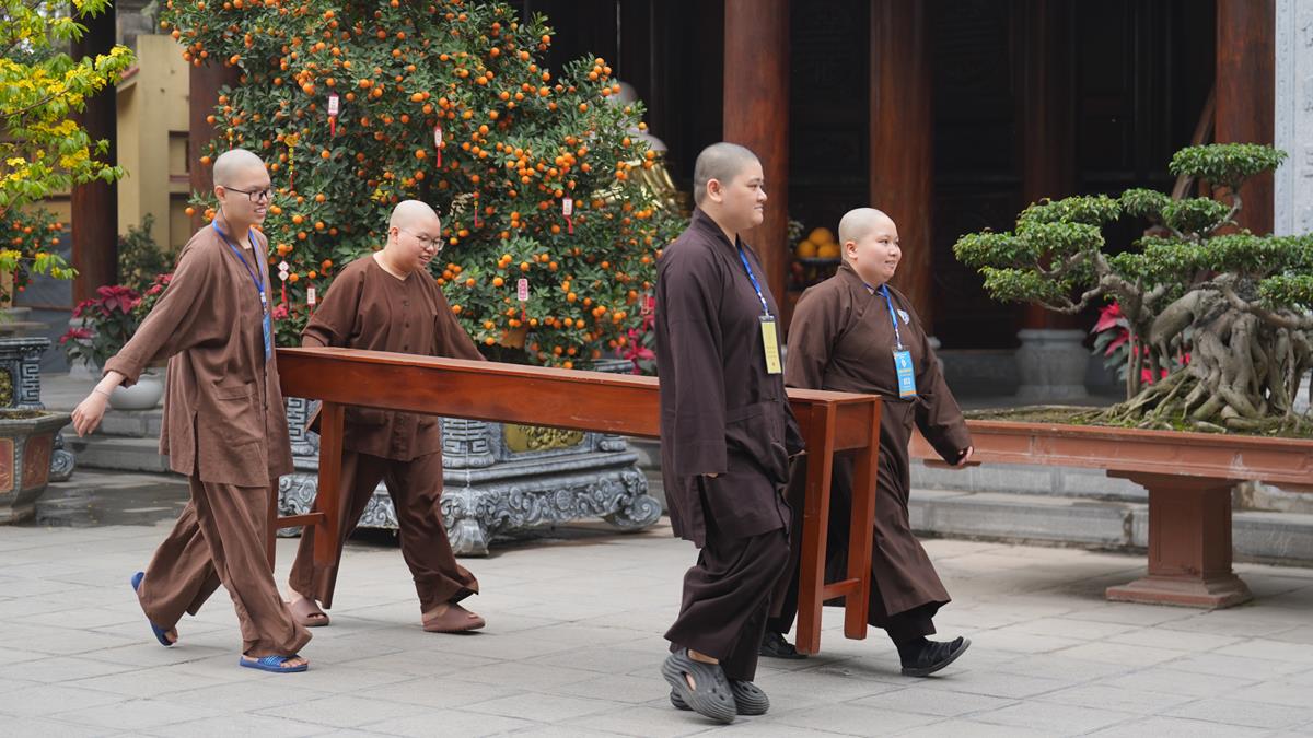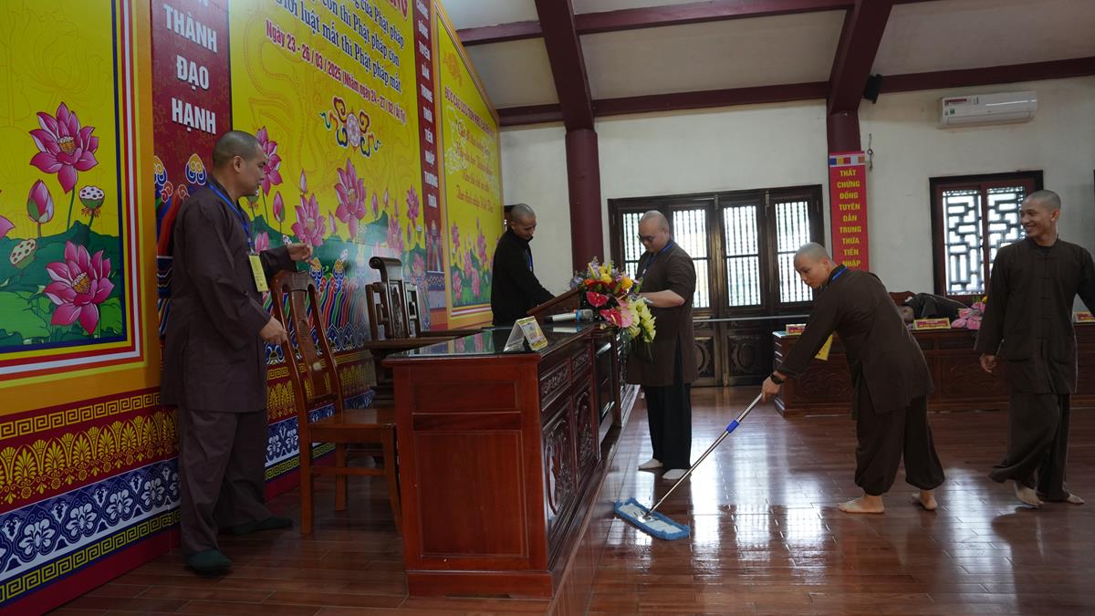Hồi hộp, háo hức là tâm trạng chung của các giới tử trước khi thụ nhận giới pháp. Ngay sau khi nhận phòng nghỉ và lắng nghe chư Tôn đức trong Ban tổ chức thông báo chương trình cũng như quy tắc Đàn giới, các Giới tử đã bắt tay vào trang trí, dọn dẹp và chuẩn bị cho Giới trường được trang nghiêm.