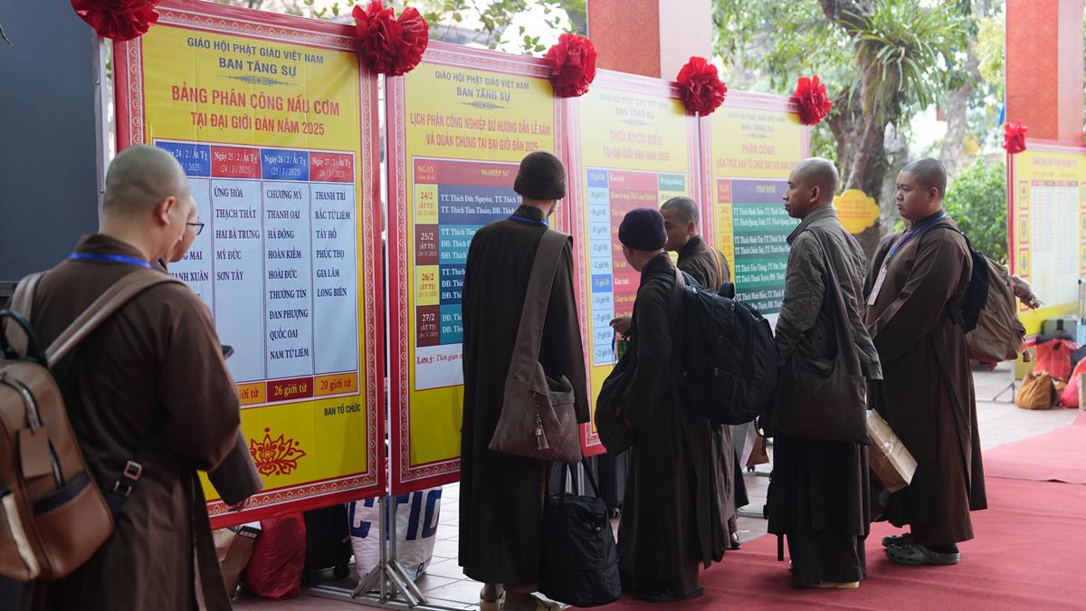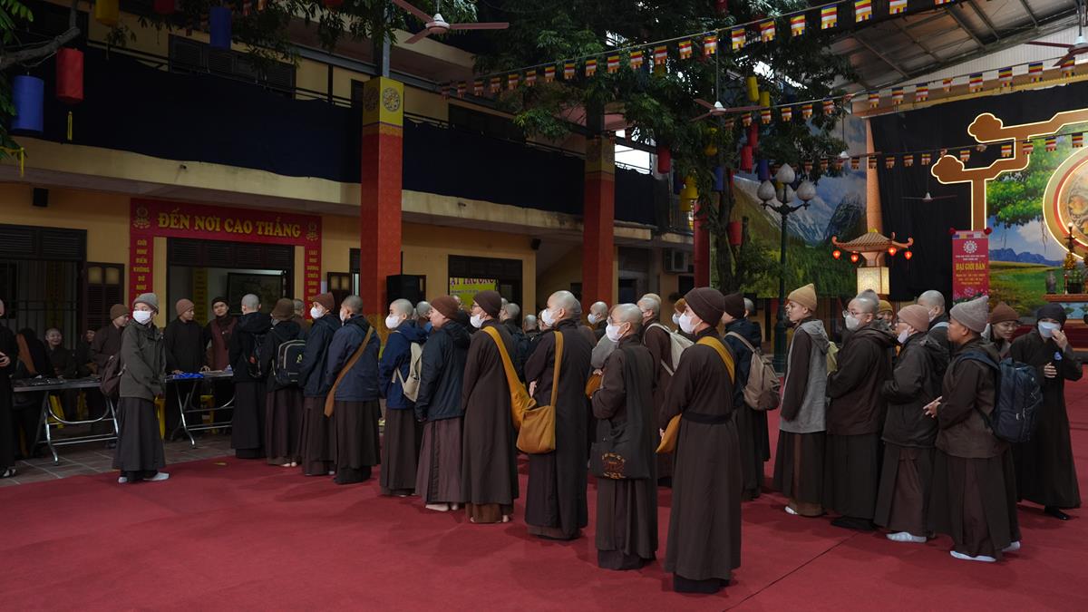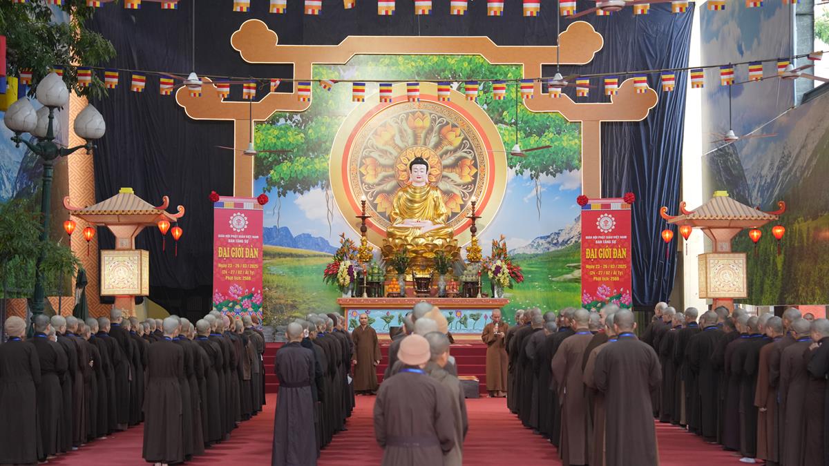 Ngày 23/3, các giới tử Đại giới đàn Hà Nội 2025 sau những ngày tập trung cấm túc thực hành bái sám tại Trường trung cấp Phật học Hà Nội (chùa Đại Từ Ân, thị trấn Phùng, huyện Đan Phượng) đã vân tập về tại chùa Bằng – Linh Tiên Tự để chuẩn bị bước vào hai ngày chính thức của Đại giới đàn.