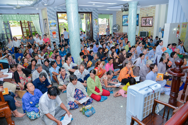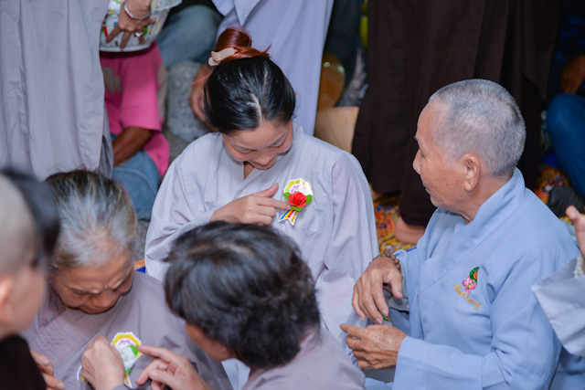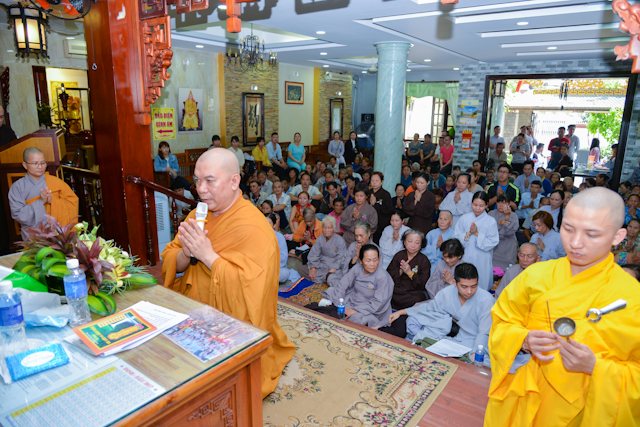 Chia sẽ thân tình tại buổi lễ, Đại đức Minh Lộc có nói: “Đây có thể là lần đầu tiên mọi người về tham dự một Lễ Vu Lan đúng nghĩa có tu, có học. Lễ Vu Lan theo truyền thống Phật giáo là ngày thể hiện tấm lòng tri ân và báo ân hai đấng sinh thành của chúng ta. Để thể hiện được lòng hiều thảo thì việc nên làm tốt nhất là sống cuộc đời lương thiện, biết đi chùa, tụng kinh, sám hối, giúp đỡ mọi người. Từ công đức thù thắng đó, mọi người có thể cải thiện hơn những nghiệp lực xấu mà đã tạo cho đời sống hiện tại của mình trở nên khó khăn, nghèo khổ. Cũng công đức đó chúng ta có thể hồi hướng cho cha mẹ hiện tiền được bình an, cửu hiền thất tổ quá cố được sinh siêu cực lạc.”